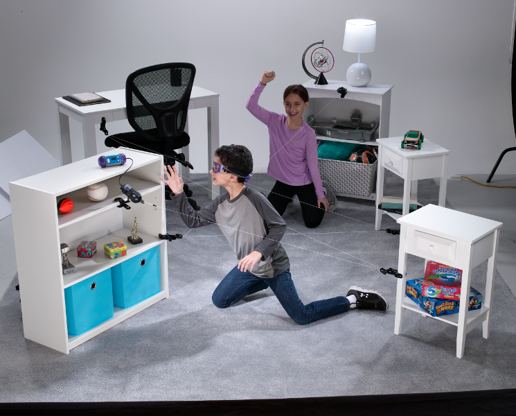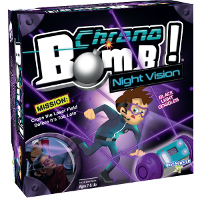 Kids get up-and-moving with Chrono Bomb® Night Vision! The Mission: Cross the Laser Field Before Its Too Late. Kids turn off the lights for a thrilling nighttime mission! Using the clamps and 37-foot string to create a "laser" field to crawl through, kids wear UV light goggles to illuminate the string, and carefully make your way through the laser field. Chrono Bomb Night Vision can still be played during the day with the lights on, just like the original and as always, the game can be played over and over again, building new courses each time or trying to beat your time and master your favorite setup! |